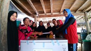 Bantuan diserahkan kepada kelompok oleh Herliana Aksan, S.St.Pi dan Andi Rismayani, S.Pi selaku Penyuluh Perikanan KKP didampingi Asep Pranajaya, S.Pi dan Syamsuriani, S.Pi selaku penyuluh Balai TN.TBR, serta disaksikan oleh Usman, S.Hut, MP (KSBTU Balai TNTBR) dan Aisyah Amnur, SP.,MP. (Ka.SPTN Wilayah II Jinato TNTBR).