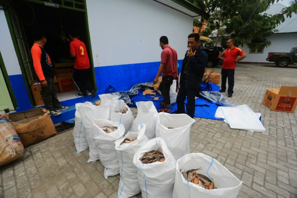 13 karung dengan total 271,6 kg ikan kering jenis sinrili.