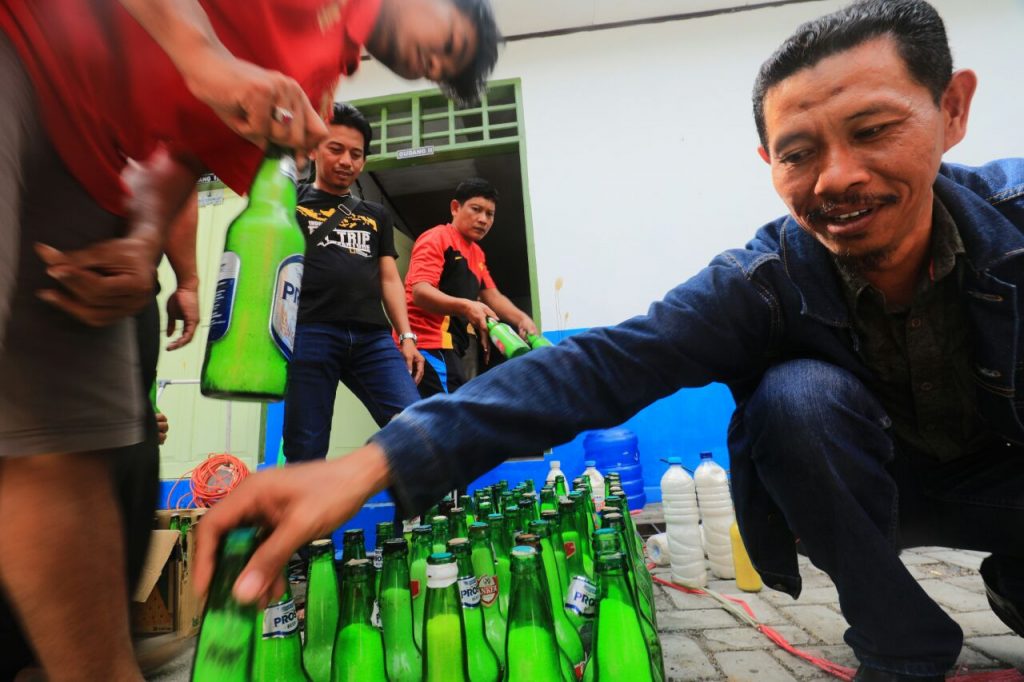 18 botol bir yang berisikan pupuk amonium nitrat