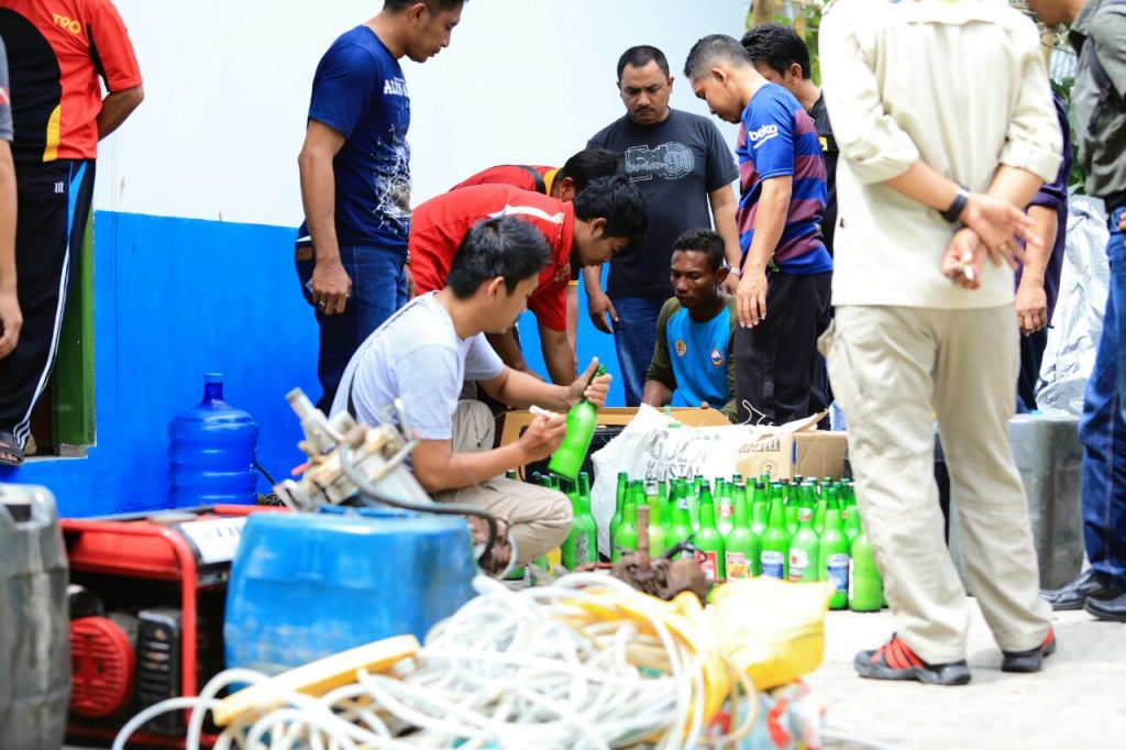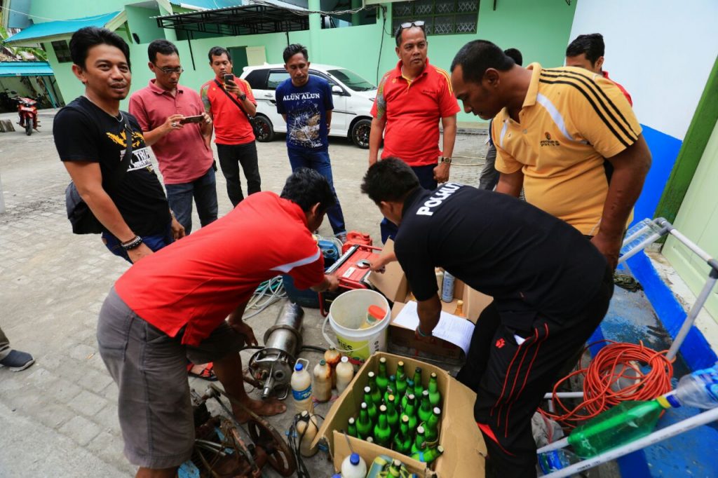 Kepulauan Selayar, 18 Agustus 2017. Operasi yang dilaksanakan selama 7 hari (10 s/d 16 Agustus 2017) di dalam kawasan TN. Taka Bonerate ini membuahkan hasil yg terbilang cukup besar karena berhasil mengamankan serangkaian bahan bom dan bius ikan yang kondisi siap digunakan.