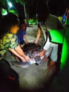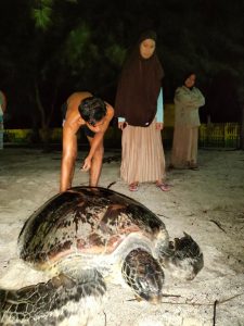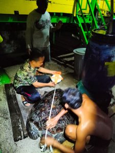 Jinato, 12/01/2022 – Malam, sekitar pukul 20.00 WITA, petugas di Resort Lantigiang, SPTN Wilayah II Jinato, Balai Taman Nasional Taka Bonerate mendapatkan laporan dari masyarakat mengenai adanya penyu dewasa yang terlilit sampah tali di Pantai Sebelah Utara Pulau Jinato. Menindaklanjuti laporan tersebut, petugas lalu bergegas ke lokasi guna melakukan penyelamatan satwa tersebut.