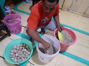 Petugas kemudian menerima serahan telur tersebut dan mengapresisasi kepedulian Arca dan Istri dalam upaya pelestarian penyu. Petugas lantas melakukan prosedur untuk menetaskan telur penyu secara semi alami di pos jaga. Perlu diketahui bahwa, ini bukan kali pertama Arca melakukan penyelamatan terhadap telur penyu di Latondu. Pada 04 November 2021 lalu, ia juga menemukan dan menyerahkan 120 butir telur penyu kepada petugas. Semoga semakin banyak masyarakat yang peduli akan kelestarian penyu, seperti Arca dari Desa Latondu.